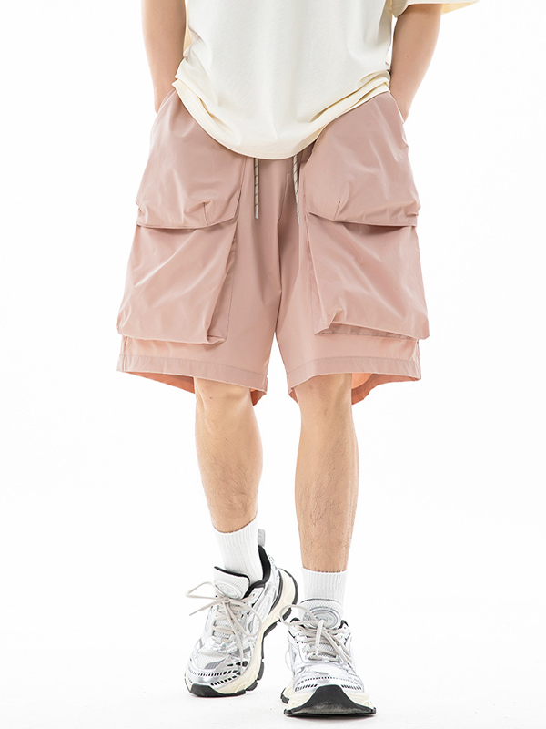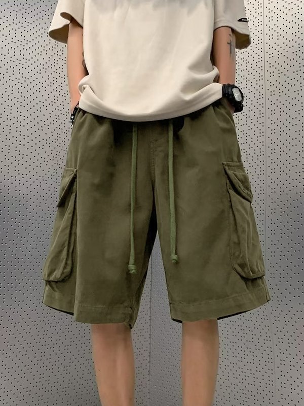 Einfarbige, lockere Cargo-Shorts für Herren mit mehreren Taschen