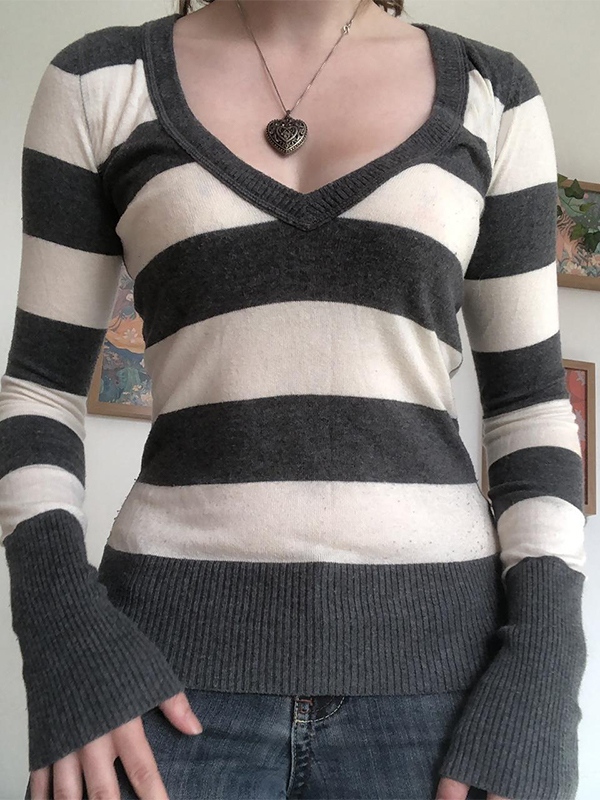 Gestreifter Langarm-Strick mit V-Ausschnitt
