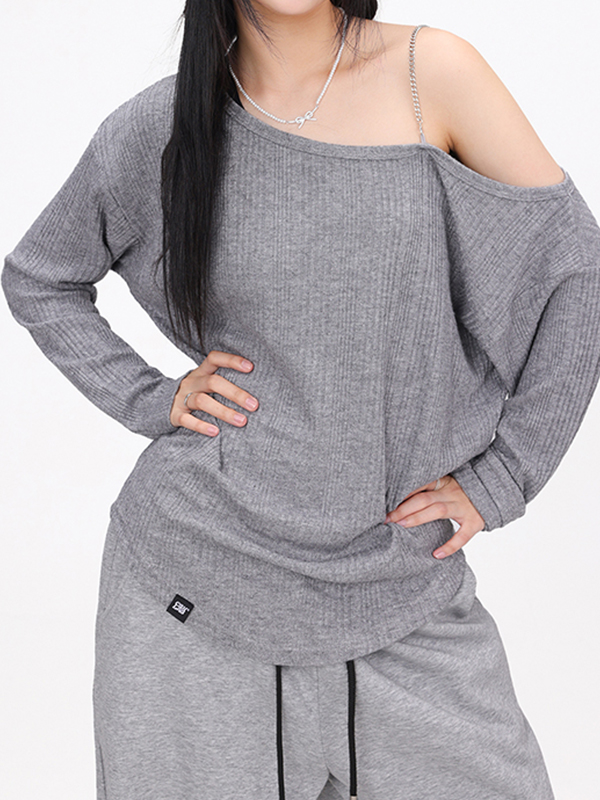 Langärmliges Stricktop mit Spitzeneinsatz und Knöpfen