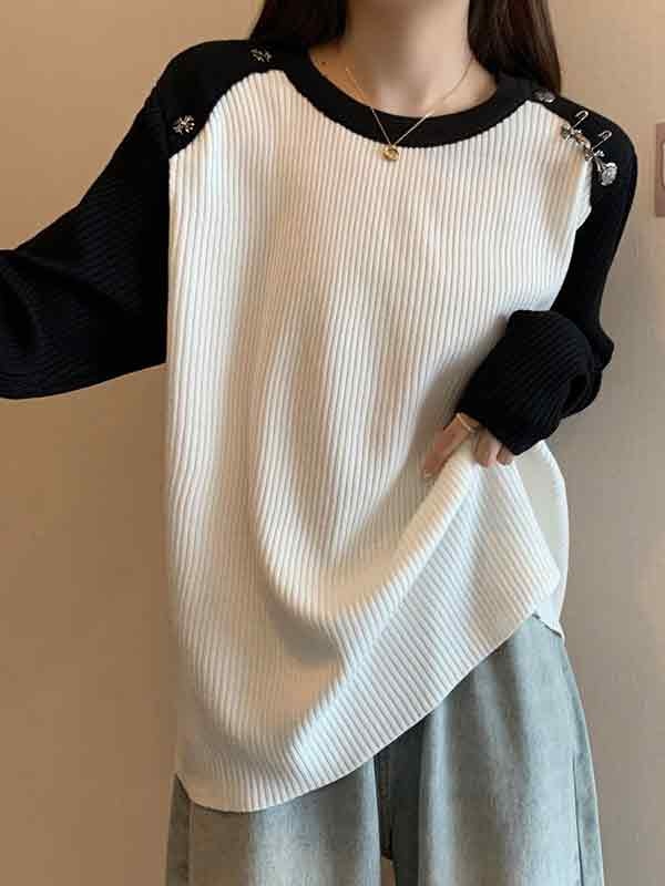 Kontrastfarbener, langärmliger Strick mit Spleiß- und Metalldekor