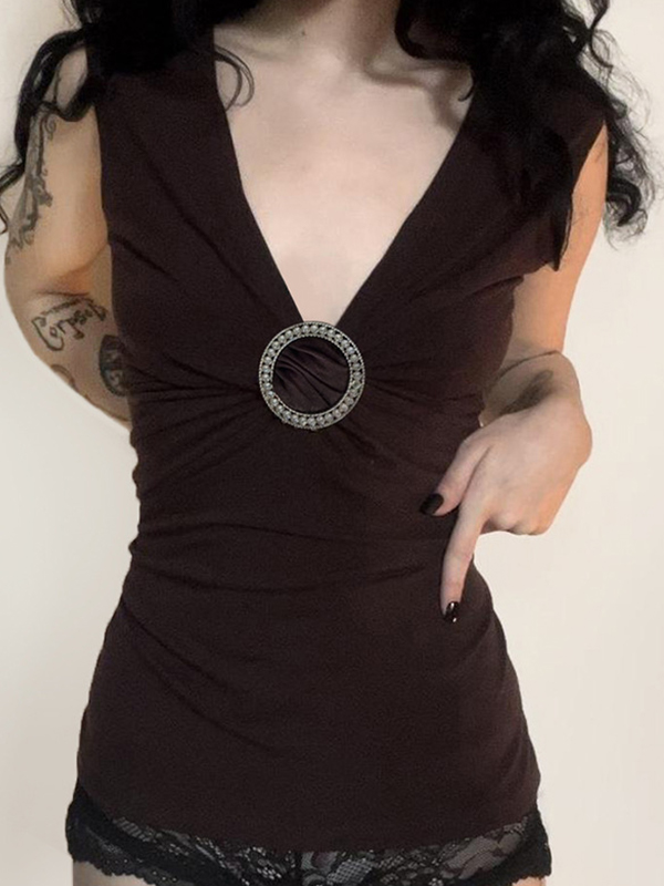 V-Neck Ruffles Show Off Your Breasts Tank Top