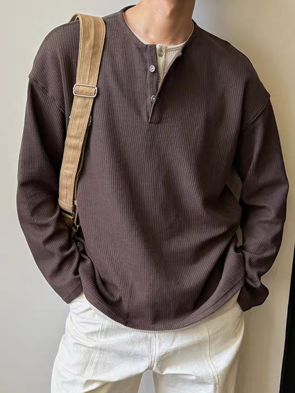 Einfarbiges, übergroßes, langärmliges T-Shirt für Herren