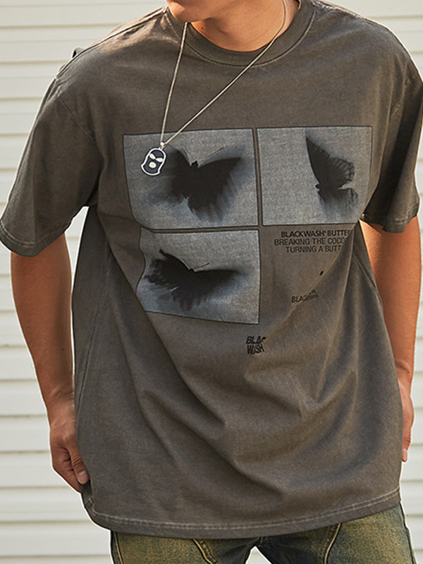 Übergroßes, kurzärmliges T-Shirt mit Schmetterlingsgrafik für Herren