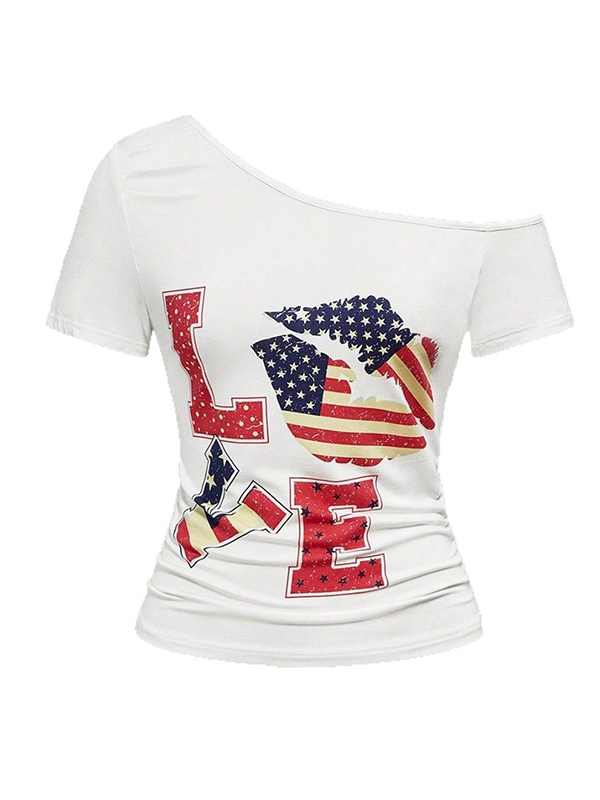 One-Shoulder-T-Shirt mit digitalem Druck und kurzen Ärmeln