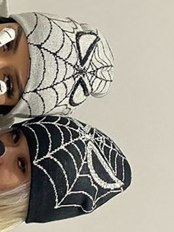 Beanie-Mütze mit Spinnennetz-Print und Strassverzierung