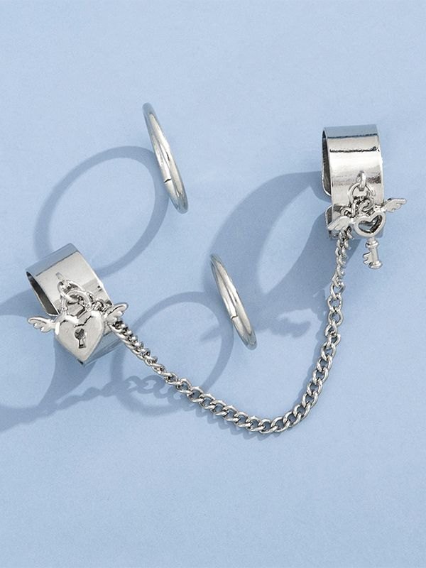 Details: Mit 1 kettenverziertem Doppelring und 2 einfachen Ringen im Set