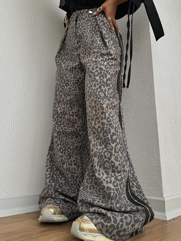Hose mit weitem Bein und Leopardenstreifen an der Seite