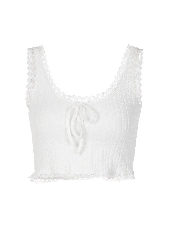 Stil: Street/Y2K/Sweet/Sexy Material: Polyester, Spandex Passform: Slim Fit Ausschnitt: U-Ausschnitt Ärmellänge: Ärmellos Beschreibung: Schnürverschluss vorne, mit Spitzenbesatz, offenes Rückendesign