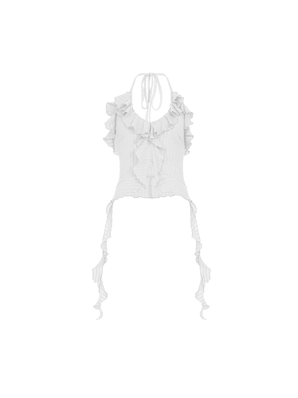 Neckholder-Weste mit strukturierten Rüschen im Resort-Stil