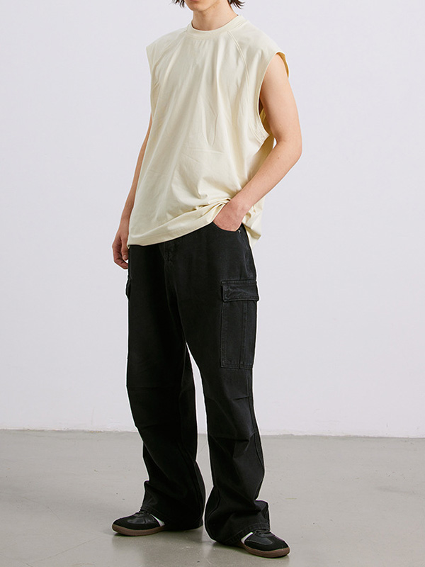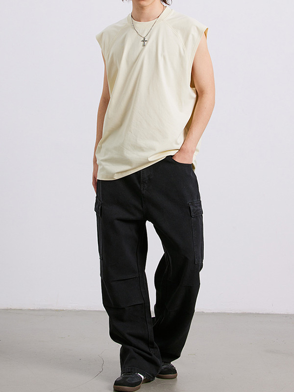 Lockere Weste mit Rundhalsausschnitt für Herren, einfarbig